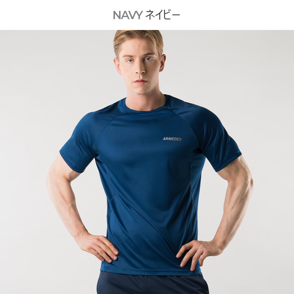 送料無料 ARMEDES アルメデス アンダーレイヤー 半袖Tシャツ 接触冷感 吸汗速乾 優れた伸縮性 UVカット メンズ オールシーズン インナー M-XXL | アンダーウェア トレーニングウェア コンプレッションインナー フィットネス ランニング Tシャツ ネコポス