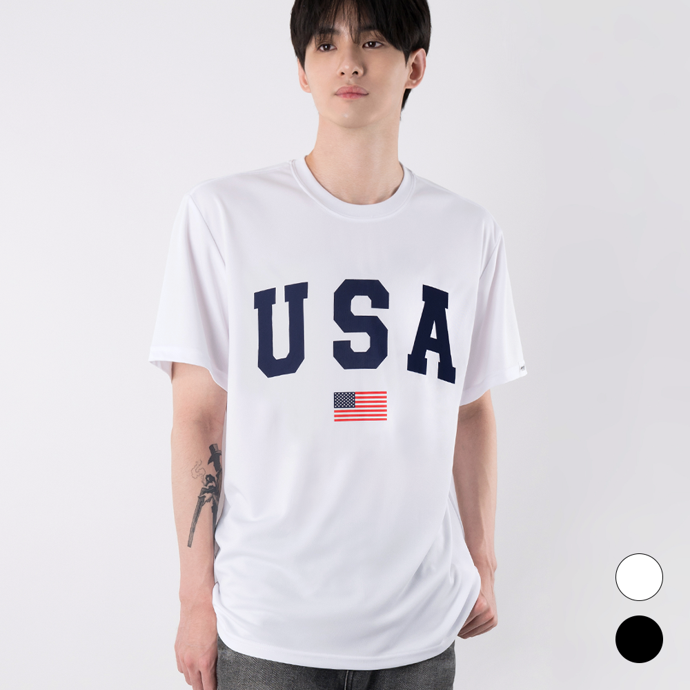 胸には「USA」の文字や国旗がデザインされており、カジュアルでスタイリッシュな印象を与えます。